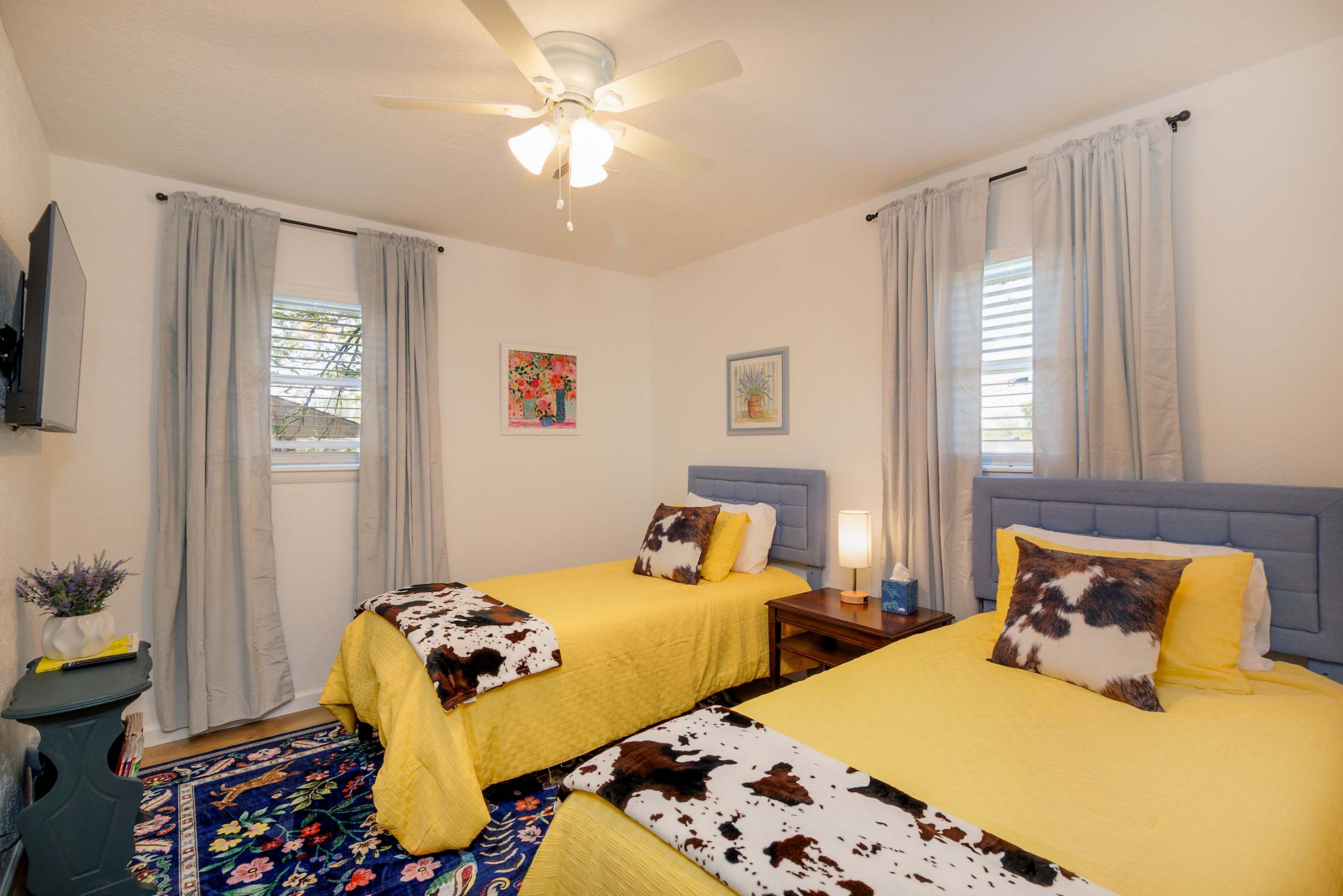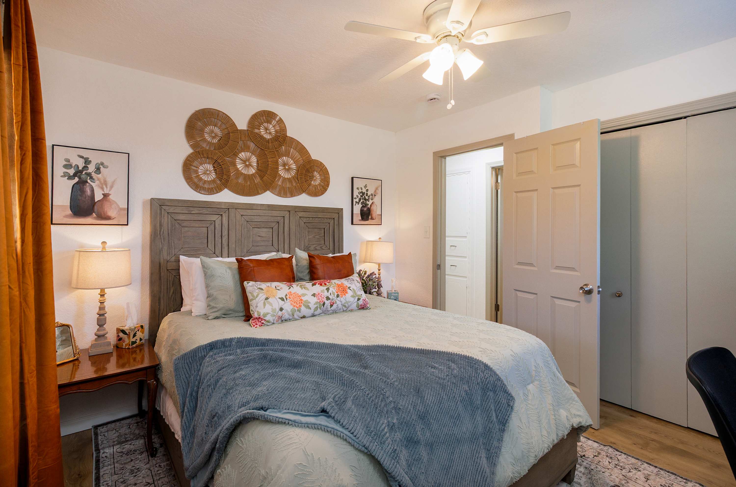 I LOVED the decor of the house. It felt very homey when we celebrated Thanksgiving with our new soldier. We have very different sleepers and we all slept well on the mattresses. There are ceiling fans in all the rooms which we also appreciated. It's close to Fort Sill if that's the reason you are visiting Lawton. If it is available, I will be staying here again for my son't AIT graduation.